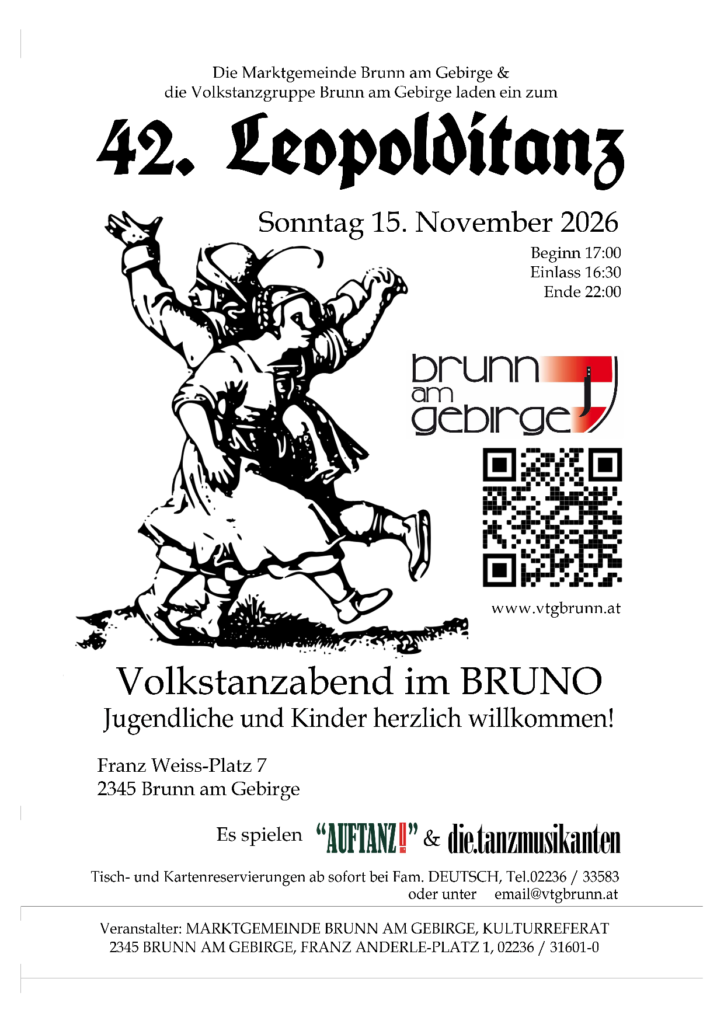 Die Marktgemeinde Brunn am Gebirge und die Volkstanzgruppe Brunn am Gebirge laden Sie herzlich ein!
