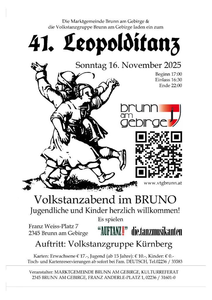 Die Marktgemeinde Brunn am Gebirge und die Volkstanzgruppe Brunn am Gebirge laden Sie herzlich ein!